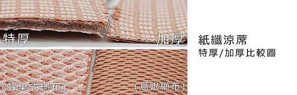 答 : 特厚款背後為較厚的蜂巢式網布層,透氣性較好,加厚款背後為較薄的鳥眼網布,可依照個人需求選購。